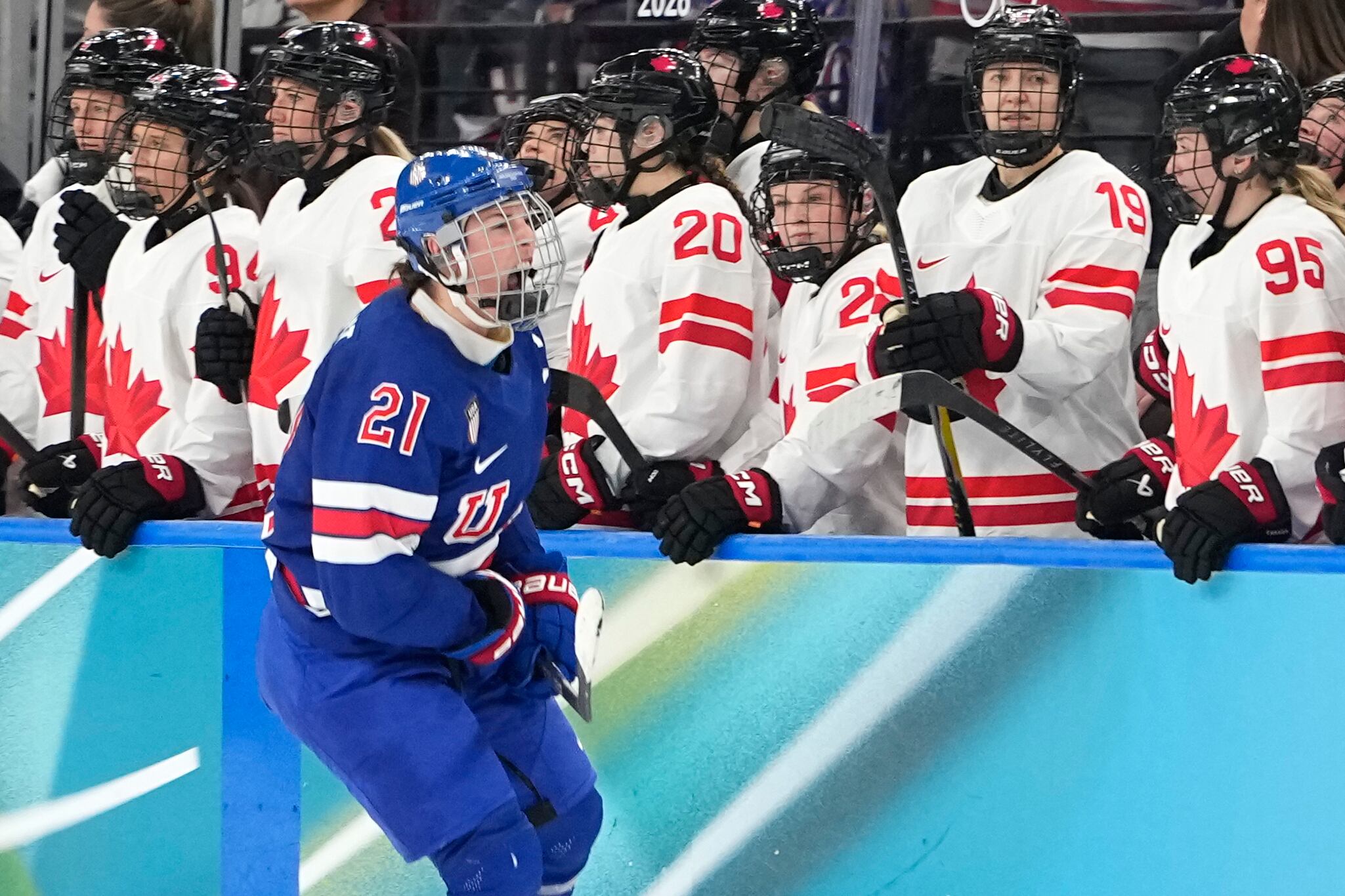 হিলারি নাইট তার আমেরিকান সতীর্থদের সাথে টাই গোল উদযাপন করতে কানাডিয়ান বেঞ্চের পাশ দিয়ে একটি ক্রুজ উপভোগ করেছিলেন। – হাসান আম্মার
