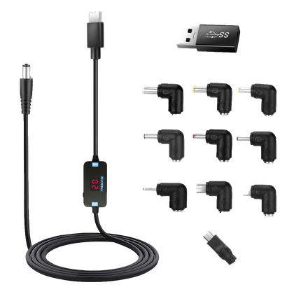 Farsense USB-C থেকে DC চার্জিং কিটে একটি ভোল্টেজ ট্রিগার, 10টি পাওয়ার সংযোগকারী টিপস এবং একটি USB-A থেকে USB-C অ্যাডাপ্টার রয়েছে৷ এটি আপনাকে একটি USB-C বা USB-A পোর্টকে মাইক্রো ইউএসবি, মিনি ইউএসবি, ইউএসবি-সি এবং সেভেন-ব্যারেলড জ্যাক সহ বিভিন্ন সংযোগকারী প্রান্তে রূপান্তর করতে দেয়।